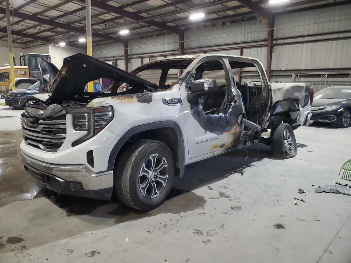 BURN. Left Head Lamp: Broken (Replacement Required); Left Front Fender: Severe Damage (Replacement Required); Left Front Door: Severe Damage (Replacement Required); Left Front Carpet: Torn (> 12 Inches); Left Front Seat: Broken (Replacement Required); Right Head Lamp: Broken (Replacement Required); Right Front Door: Severe Damage (Replacement Required); Right Front Fender: Severe Damage (Replacement Required); Right Front Carpet: Torn (> 12 Inches); Right Front Seat: Broken (Replacement Required); Left Rear Door: Severe Damage (Replacement Required); Left Rear Carpet: Torn (> 12 Inches); Left Rear Seat: Broken (Replacement Required); Left Bed Side: Severe Damage (Replacement Required); Right Rear Door: Severe Damage (Replacement Required); Right Rear Carpet: Torn (> 12 Inches); Right Rear Seat: Broken (Replacement Required); Right Bed Side: Severe Damage (Replacement Required); Front Bumper Cover Upper: Broken (Replacement Required); Grille: Broken (Replacement Required); Hood: Severe Damage (Replacement Required); Left Rocker Panel: Severe Damage (Replacement Required); Tailgate: Severe Damage (Replacement Required); Right Rocker Panel: Severe Damage (Replacement Required); Steering Wheel: Broken (Replacement Required); Radio: Broken (Replacement Required); Engine: Broken (Repair Required); Frame: Corrosion (Severe Damage); Inside Bed: Severe Damage (Replacement Required); Dash: Broken (Replacement Required); Roof Panel: Severe Damage (Replacement Required); Rear Metal Bumper Chrome: Dent(S) W/No Paint Dmg (1 To 2 Inches); L Cab Corner Panel: Severe Damage (Replacement Required); Lr Axle Assembly: Broken (Replacement Required); R Cab Corner Panel: Severe Damage (Replacement Required)